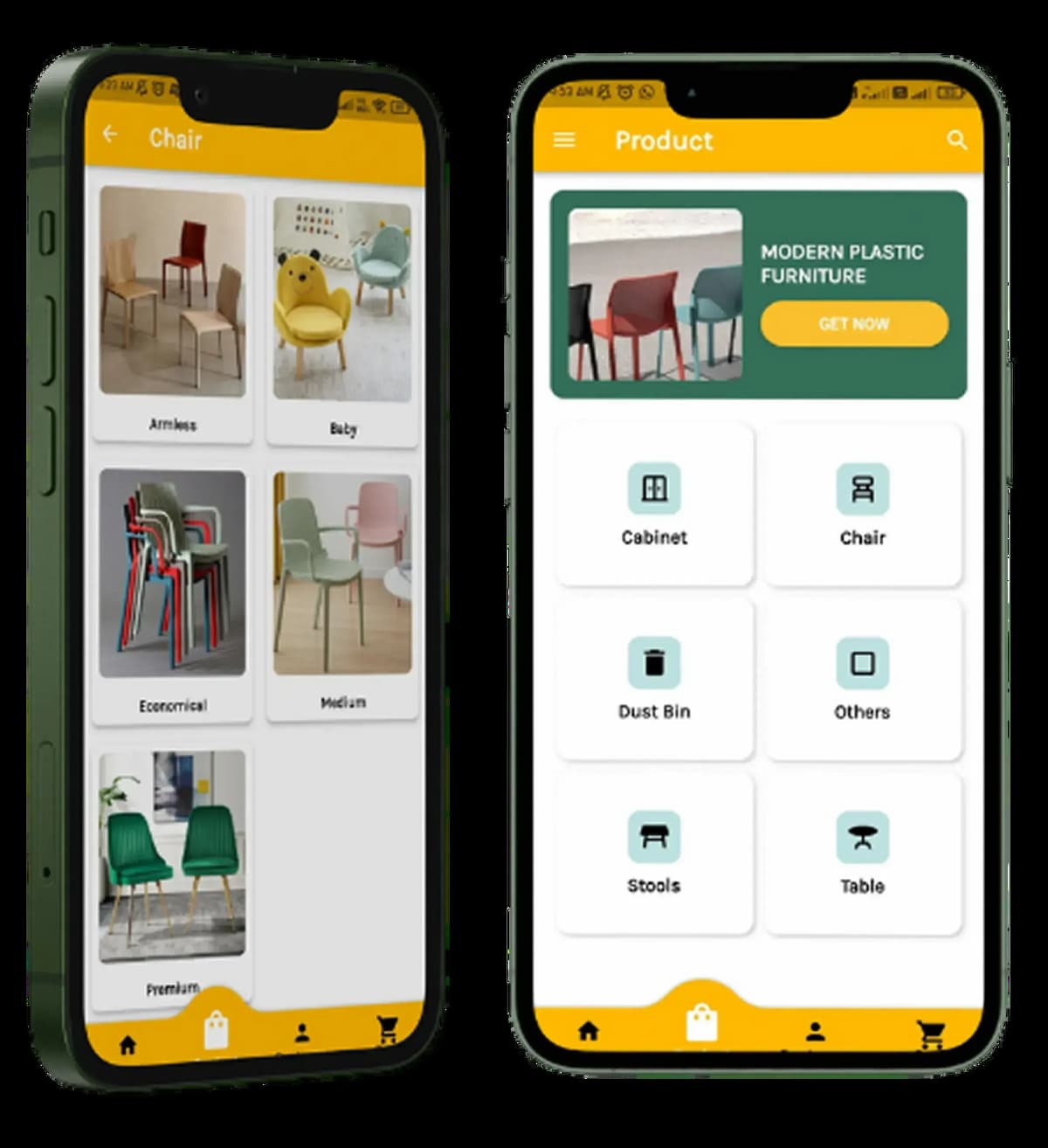Your product screen helps users explore offerings effortlessly through clear categorization and visual clarity. From furniture types to utility items, it’s designed to streamline the product discovery experie